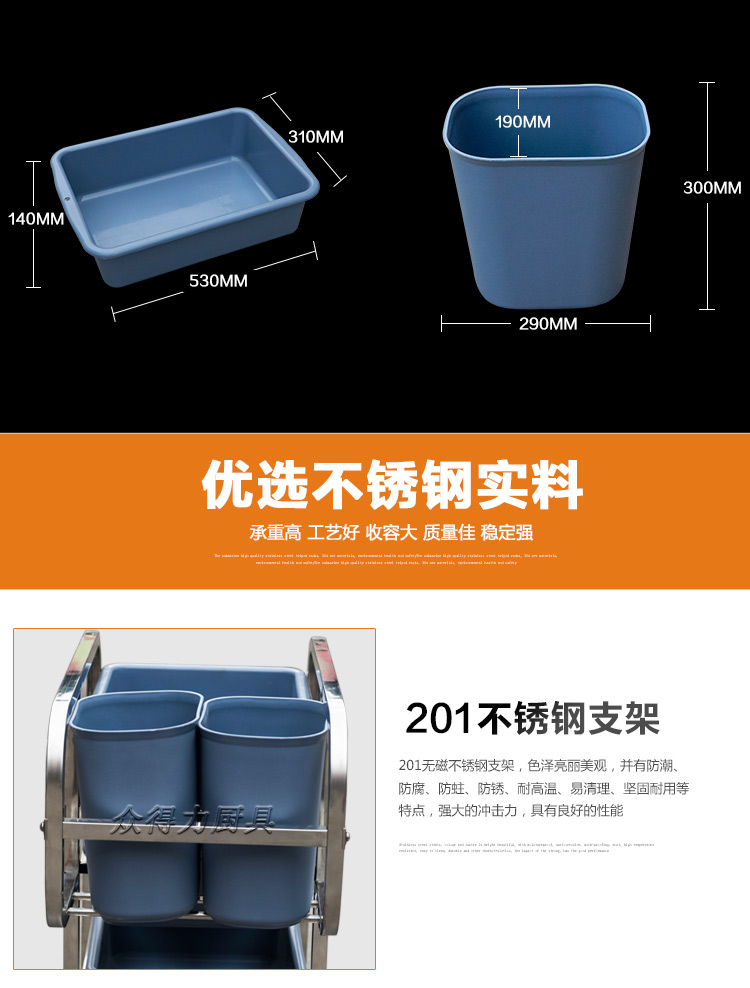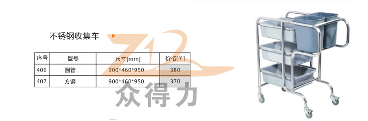 江西眾得力廚具有限公司生產(chǎn)銷售商用廚具,白鋼調(diào)理系列設(shè)備及食品機械,提供中央廚房工程項目整體解決方案。不銹鋼收集車有方管和圓管之分,組裝式,拆卸清洗方便,采用標配足0.8mm201無磁不銹鋼加工設(shè)計。外形美觀,設(shè)計精量,符合餐飲食品衛(wèi)生需求。
