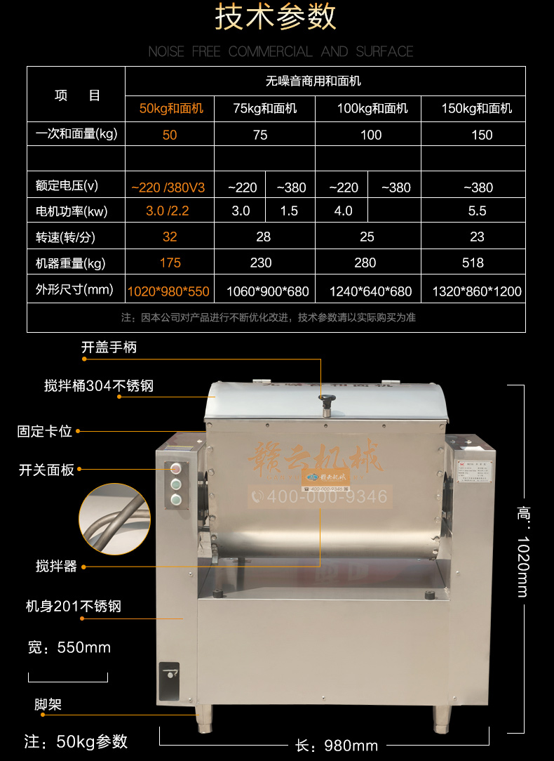 眾得力廚具為您提供商用和面機,米面加工設備,包子機,餃子機,壓面機,揉面機,打蛋機、發酵箱、面案工作臺,面點加工間整體解決方案,本和面機系列有15kg、25kg、50kg、75kg、100kg多個型號款式可供選擇。攪拌軸及攪拌桶均為食品級不銹鋼材質加工制作,工作聲音底,攪拌均勻,操作簡單