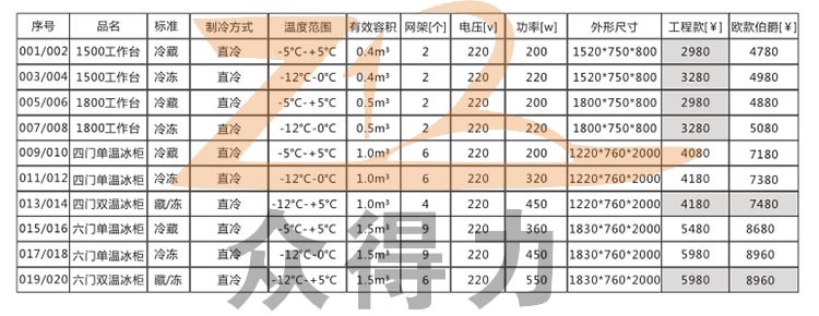 冷藏冷凍柜系列產(chǎn)品技術(shù)參數(shù)及統(tǒng)一報(bào)價(jià):