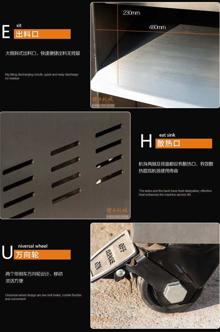 贛云2017款精裝絞切機上市了,整機采用1mm標準厚304不銹鋼板材加工設計,配有切肉片刀組和切肉絲刀組,可一次成絲,雙電機控制切肉刀組獨立工作,免工具拆裝刀組,較之2016款切絲機相比,動力翻倍,板材用料更足,最主要的是價格不貴:4680元