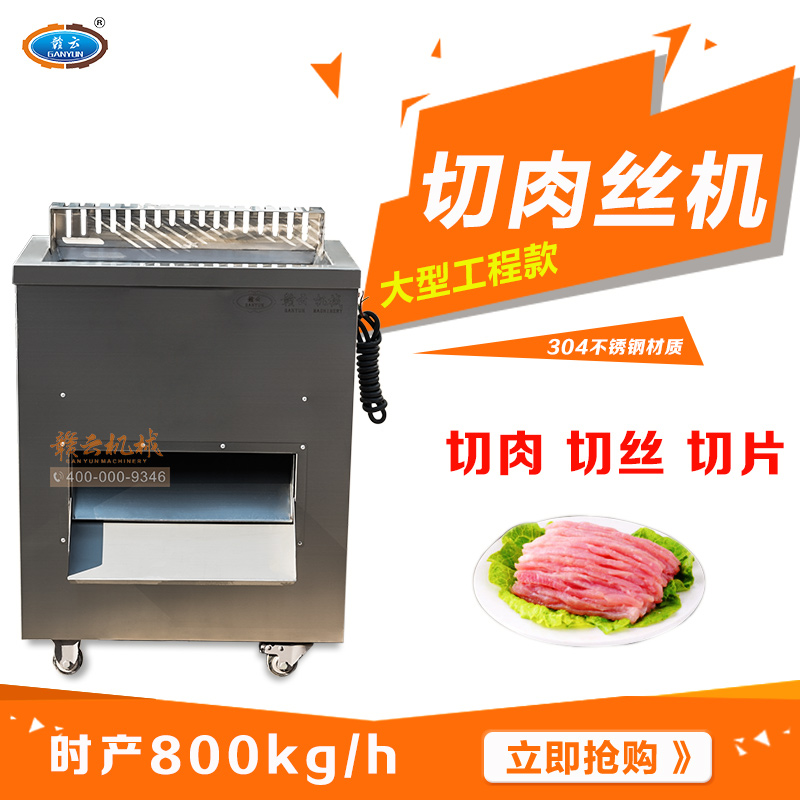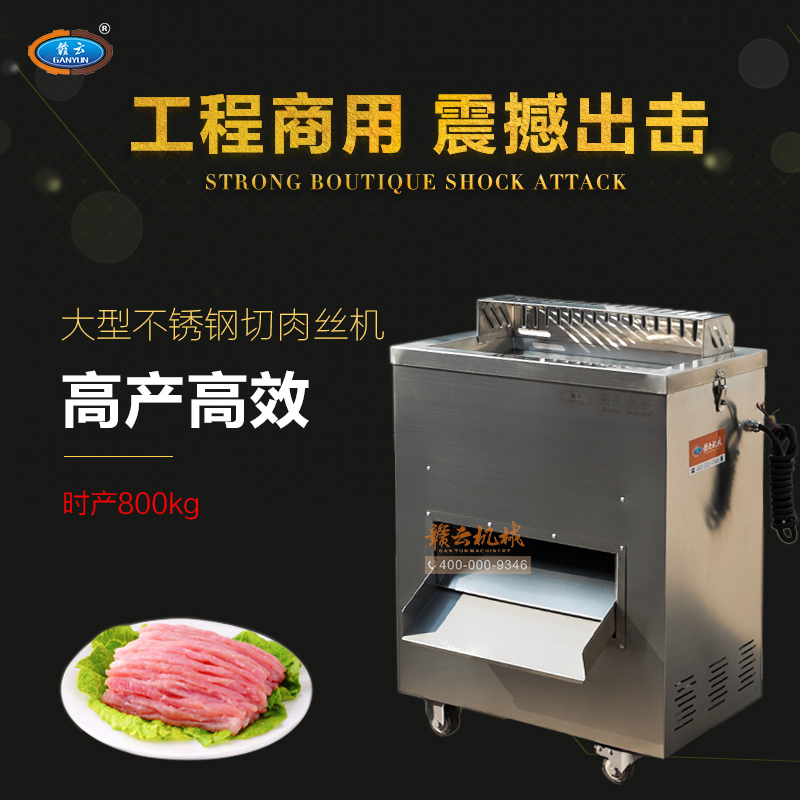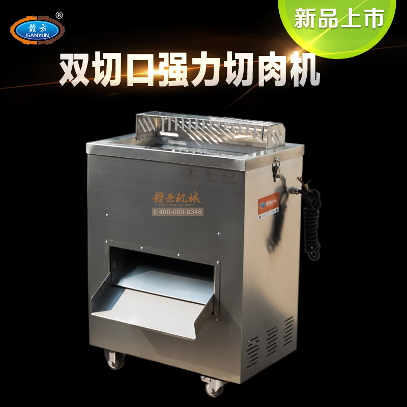 贛云2017款大型切肉機,工程款切肉片肉絲機,采用1.2mm304不銹鋼板材加工設計,配備3kw大功率純銅電機,380v工業用電,使得產品性能穩定,雙滾切刀設計,切肉效率高,雙規格切肉刀具組合,適合大眾需求。
