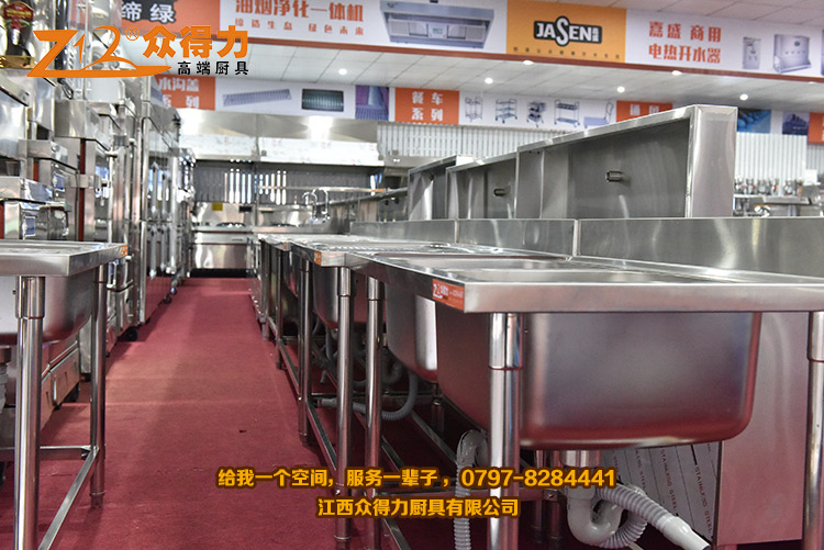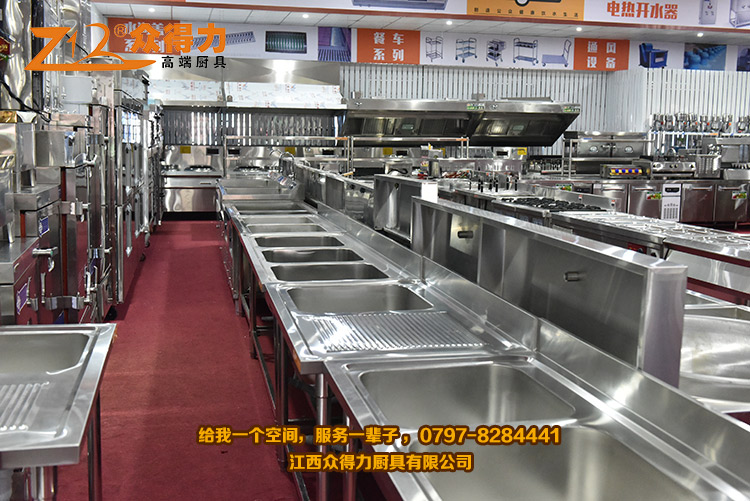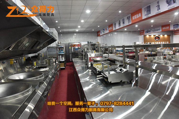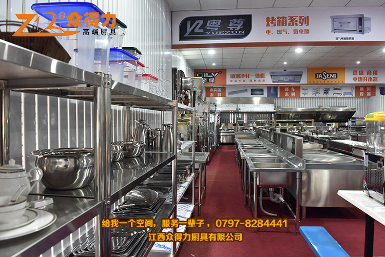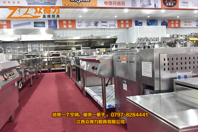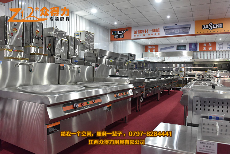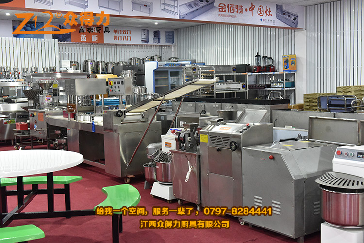 眾得力廚具,給我一個空間,服務一輩子!江西眾得力廚具有限公司產品展廳一角,專注廚房設備,為贛州地區提供各種小吃設備、早餐設備、自動調湯設備、米面加工設備、火鍋店設備、酒店用品、調理品等系列商用廚具,并為餐飲食品企業提供整體規劃及解決方案。
